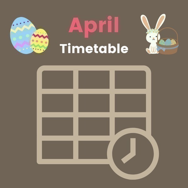 View the PDF attached to see the full April timetable and then book your lessons through the app. Please note we will be closed on Sunday 9 April for Easter.