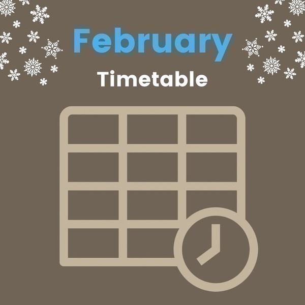 View the PDF attached to see the full February timetable and then book your lessons through the app.