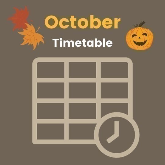 View the PDF attached to see the full October timetable and then book your lessons through the app.Â